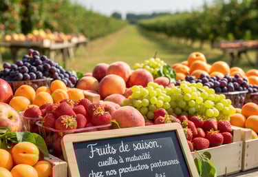 Fruits de saison, cueillis à maturité chez nos producteurs partenaires. Fraîcheur et qualité au rendez-vous.