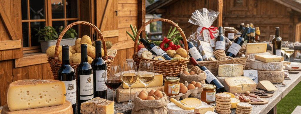 Idéal pour offrir ou découvrir la gastronomie savoyarde : fromages, vins, charcuteries et douceurs locales regroupés dans un coffret sur demande.